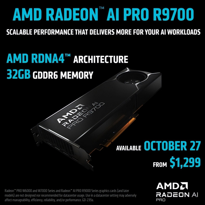 “凭借AMD RDNA 4架构,Radeon AI PRO R9700能够让中到大型AI模型直接在本地工作站上运行。结合AMD ROCm支持,该卡可以加速大型语言模型、扩散模型和其他计算密集型工作流程,将数据中心级别的效率带到桌面。”